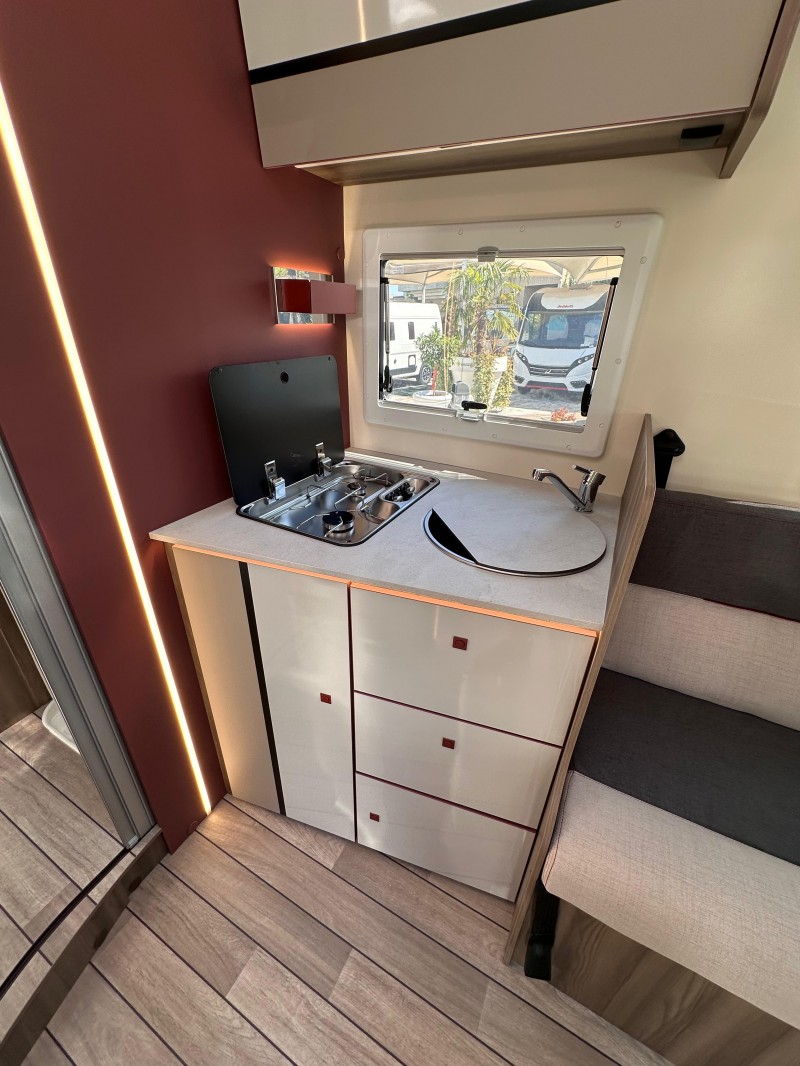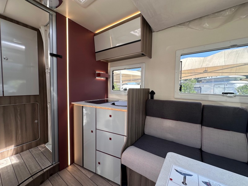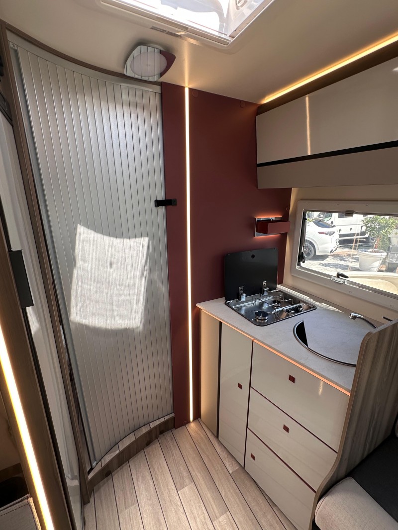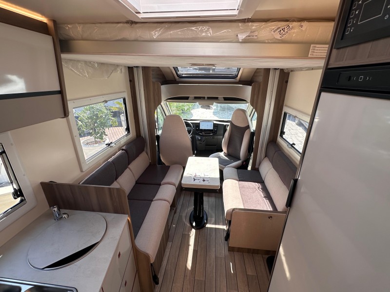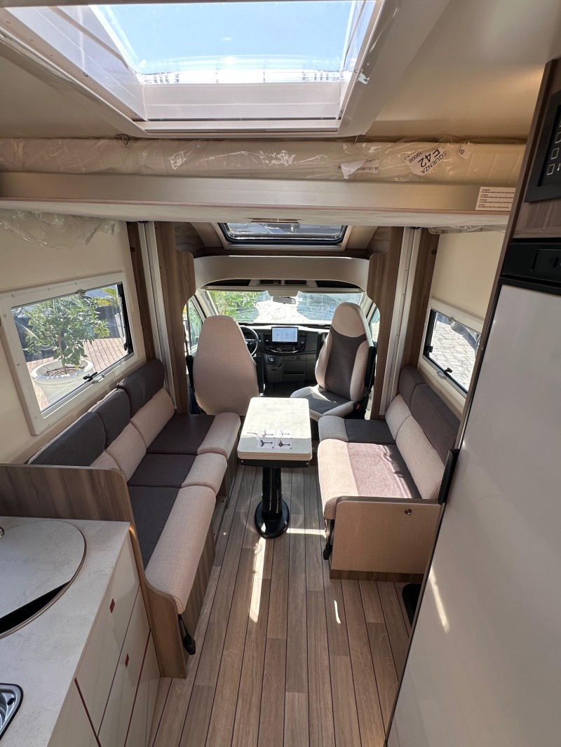 (Motore 165 CV - Fari "High Series" con luci di svolta statiche - Vano portaoggetti con serratura - Rivestimenti interni e plancia strumenti "Trend" - Paraurti e modanature laterali verniciati in tinta con la carrozzeria - Porta ingresso cellula XL con 2 punti di chiusura, con finestra e chiusura centralizzata - Pannello solare 200W con regolatore MPPT - Pannello di control CP-Plus - Skyroof - Coprilavello - Coprisedili cabina - Oscurante cabina plissettato)